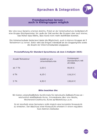 Preisstaffelung für Standard Sprachkurse ab dem 2.Halbjahr 2025: