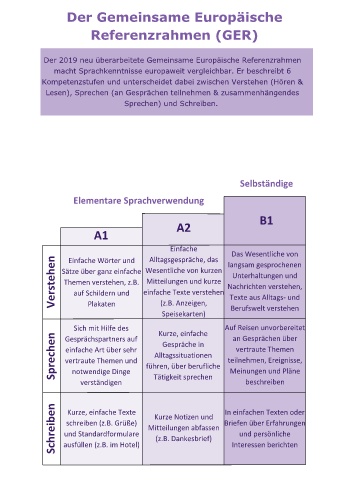 Der 2019 neu überarbeitete Gemeinsame Europäische Referenzrahmen Die Beschreibung soll Ihnen bei der Orientierung bei der Wahl eines