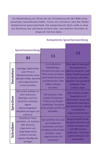 Kompetenzstufen und unterscheidet dabei zwischen Verstehen (Hören & entsprechend gekennzeichnet. Die entsprechende Stufe sollte in etwa