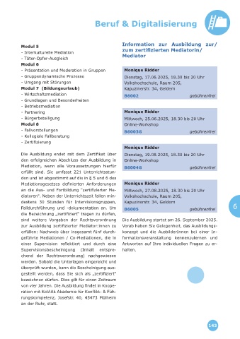an die Aus- und Fortbildung "zertifizierter Me- Mittwoch, 27.08.2025, 18.30 bis 20 Uhr