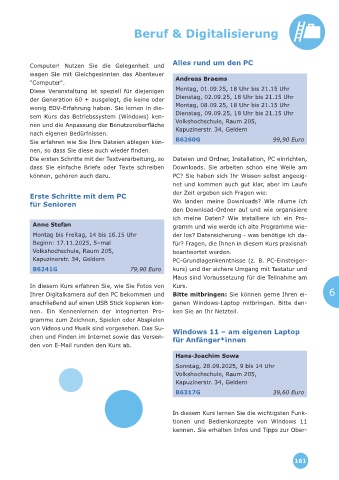 wenig EDV-Erfahrung haben. Sie lernen in die- Montag, 08.09.25, 18 Uhr bis 21.15 Uhr