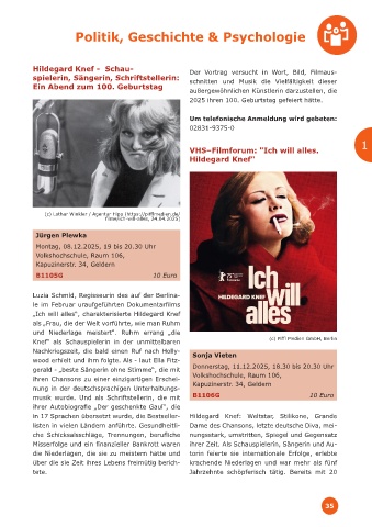 ihren Chansons zu einer einzigartigen Erschei- Volkshochschule, Raum 106,