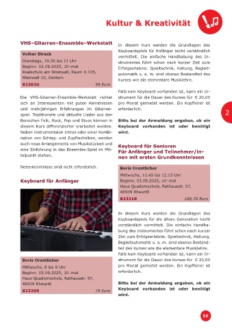 Die VHS-Gitarren-Ensemble-Werkstatt richtet strument für die Dauer des Kurses für € 20,00