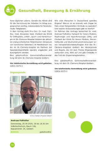 Um telefonische Anmeldung wird gebeten: tung mit dem St.-Clemens-Hospital Geldern.