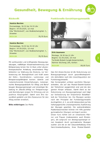 beugen Bewegungsmangel und einseitiger Be- der Teilnehmer ausgerichtet sind und die den