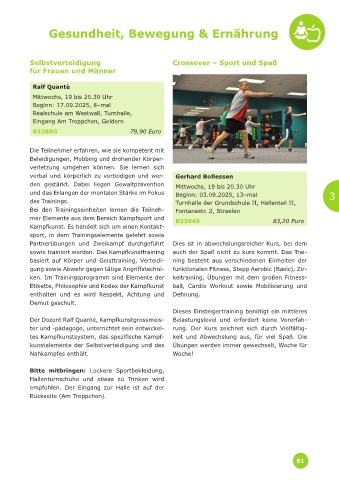 gung sowie Abwehr gegen tätige Angriffstechni- funktionalen Fitness, Stepp Aerobic (Basic), Zir-